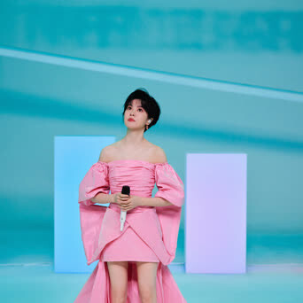 郁可唯最新活动造型释出,身穿粉色抹胸礼裙,甜美俏丽